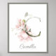 Letter C Monogram Pink Rose Foliage Nursery Poster