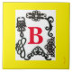 Photograph of black filigree w/ the initial "B" in the middle of it.