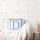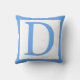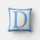 Letter D. Pretty monogram (single inital) throw pillow. The border and the single letter are done in baby blue.