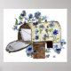 Open mailbox art poster. Drawing done in colored pen and ink shows an open mailbox with letters inside. A blue flowering vine is entwined around the brown post and top of the box.