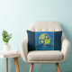 Graphic letter E monogram name and meaning boys stripe and shield pillow in blue, green, white and gray. Ideal for a personalized gift for a boy who has a name that starts with the letter E. This example reads Evan Favored. Youthful, adaptable and strong. or you can customize the text with your own name or words. Reverse is a simple thin green and blue stripes pattern. Makes a great custom gift for a birthday, baby shower, new baby boy, baby naming, christening, baptism or another name celebration. Other names and letters in this knight crest shield style available. © Typographical letter E graphic knights shield drawing, with a regal crown, animal bear head and star. Unique art and design created by Sarah Trett. www.sarahtrett.com for www.mylittleeden.com