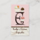 Letter E Monogram Custom Business Cards for your cupcake or other bakery business. Sweet and Contemporary! This business card design features three hand painted cupcakes in chocolate brown and soft pink and cream. The Monogram Letter is in “chocolate” and will appeal sweet lovers everywhere! The background is a soft shell pink with latte colored swirls over a cream crackle finish and a chocolate brown stripe. This design is perfect for your wedding shower, bridal shower or for businesses such as wedding coordinators, event planners, bakeries, bake shops, custom wedding cake designers, specialty cupcake services and more. Every letter of the alphabet is available, if you don't see what you want just email us!