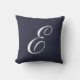 Personalized monogram pillow with a classic script letter E on a Navy Blue background. Made in the USA from machine washable cotton or polyester. Perfect for Elizabeth, Emily, Emma, Erica, Erika, Erin, Eva, Ellen, Esther, Elena, Evelyn or anyone else who's name begins with the letter E.
