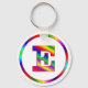 A colorful monogram with the letter E in rainbow colors inside of a rainbow circle. Share your pride of your name with a fun happy initial E.