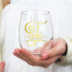 Letter F Monogram Bridesmaid Gift, Modern Elegant Stemless Wine Glass