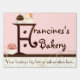 Letter F Monogram Custom Business outdoor signs for your cupcake or other bakery business. Sweet and Contemporary! This business signage design features three hand painted cupcakes and a two tiered fondant covered cake in chocolate brown and soft pink and cream. The Monogram Letter is in “milk chocolate” and will appeal sweet lovers everywhere! The background is a soft shell pink with latte colored swirls over a cream crackle finish and a chocolate brown stripe. This design is perfect for your wedding shower, bridal shower or for businesses such as wedding coordinators, event planners, bakeries, bake shops, custom wedding cake designers, specialty cupcake services and more. Every letter of the alphabet is available, if you don't see what you want just email us!