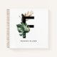 Customizable letter F monogram notebook featuring watercolor montera leaf, faux gold foil leaf and black watercolor brush accents. Personalize this tropical monogram notebook by adding your name or other details. This boho letter F monogrammed notebook will be perfect as a gift. Other letters are available.