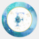 * LETTER F - Pastel Watercolor INITIAL MONOGRAM Nautical Beach colors such as Aqua Turquoise and Blue with Gold line drawing of KITE , Sea Shell, Sea Turtle and Dolphin , glitter gold foil Nautical touches decorate this Modern Trendy Gold Glitter , White and Ocean Beach Watercolor Letter Seal / Envelope Seal Sticker.