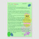 Personalized Letters from the Easter Bunny. Cute Yellow Pink Hatched Chick Egg and Green Blue Eggs against Green background. Custom designed to fit 5" x 7" Magnetic Cards. Letters are signed by the Easter Bunny himself! Cute hatched Yellow Baby Chick Egg with pink green stripes sitting in pink green Easter basket grass, with green blue decorated eggs, with green text on a light green spring background. PERSONALIZE letters by typing in each First Name, Month Year, Hometown, etc. written within body of letter separately, and Add to Shopping Cart. THE LETTER(S) WILL BE "SHIPPED" TO THE ORDERING CUSTOMER. When Easter time approaches simply add a Postage Stamp (see my store for custom designed Easter Postage Stamps), and insert into the Envelope (see my store for A7 7 1/4" W x 5 1/4" H Easter Envelopes with the colorful Easter Bunny's Official Mail Circle printed on envelope for extra "believe" fun), and Mail the envelope from the Easter Bunny to the child. (Shh! Mailed from the Easter Bunny of course!) Be sure to give yourself enough time for the letter to ARRIVE to the recipient in time to enjoy at least a couple of weeks BEFORE Easter! Or, if ordering the letter last minute (the Easter Bunny can leave their letter inside their Easter Basket). Kids will love their Magnetic Letter from the Easter Bunny to display on the refrigerator, easel, etc. Nice keepsake letter and great family tradition! Kids of all ages will look forward to the Easter Bunny sending them a special “new letter” in the Mail year-after-year! NOTE: If you choose to Personalize the entire letter with YOUR own wording, delete my wording, and make sure the text falls within the art preview safe red dotted lines (you'll notice some sentences may need to be separated by the space bar to fit within safe lines of borders). Original Artwork, Verse Design Copyright © 2013-2017 TamiraZDesigns.