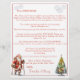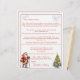 Christmas letter from Santa Claus to your child. Add your child's name, address and toy request. Cute Santa Claus fully dressed in his traditional red suit, pack on his back and holding a walking stick. A pretty brightly lit Christmas tree is in one corner. The reverse has 3 little Elves wearing pointy green caps, their ears pointy as well, making toys at their work bench.