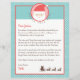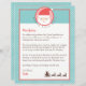 Personalize this north pole mail a letter from Santa with your child's name and text. This design features a Santa face, a brown silhouette of Santa sitting in the sleigh with his 3 reindeers and white polka dots light teal background. On the back is the coloring page of the lettering Merry Christmas and a bear holding a gift.