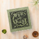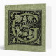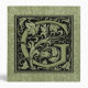 Charming decorative letter G initial monogram calligraphy style typography first letter in black over vintage sage green - avocado green book lining with off white Ginkgo biloba leaves.