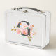 This is a standard metal lunchbox that appears to work just fine. We designed this box ourselves with an uploaded photo and custom text on the front and back. It looks absolutely beautiful except the front of the lunchbox is not centered like it shows in the photo. The print borders don't align with the inset flat part of the box where the preview photo online showed it perfectly centered in there. The back looks nice and centered though.