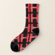 These socks feature a collection of the letter "H" with a bold print font and dual color theme the gray sock has red letters black outline the black sock has red letters black outline with a white web design inside of the letters in this mix match all over print style, all socks are made using unisex sizing.