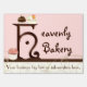 Letter H Monogram Custom Business outdoor signs for your cupcake or other bakery business. Sweet and Contemporary! This business signage design features three hand painted cupcakes and a two tiered fondant covered cake in chocolate brown and soft pink and cream. The Monogram Letter is in “milk chocolate” and will appeal sweet lovers everywhere! The background is a soft shell pink with latte colored swirls over a cream crackle finish and a chocolate brown stripe. This design is perfect for your wedding shower, bridal shower or for businesses such as wedding coordinators, event planners, bakeries, bake shops, custom wedding cake designers, specialty cupcake services and more. Every letter of the alphabet is available, if you don't see what you want just email us!