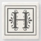 monogram,initial,elegant,black,white,square,border,letter h