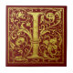 Letter I First Letter Faux Gold Red Ceramic Tile