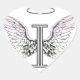Letter I Initial Monogram with Angel Wings & Halo Heart Sticker