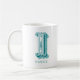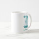 Customizable white coffee mug featuring the letter I in unique teal colored typography. Add your name using the personalization feature.