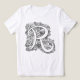 Monogram letter R doodled hand drawn line art t-shirt. Ideal for coloring in, embroidering or just kept as a outline mono letter R design. © Original ink drawing featuring, items beginning with R roses, rainbow, rabbits, rockets and raspberries letter art and design by Sarah Trett. www.sarahtrett.com for www.mylittleeden.com
