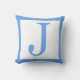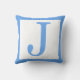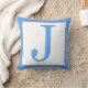 Letter J. Pretty monogram (single inital) throw pillow. The border and the single letter are done in baby blue.