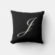 Personalized monogram pillow with a classic script letter J on a Black background. Made in the USA from machine washable cotton or polyester. Perfect for Jacqueline, Jamie, Jasmine, Jenna, Jennifer, Jessica, Jordan, Julia, Julie, Jocelyn, Jade or anyone else who's name begins with the letter J.