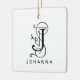 Letter J Elegant Monogram Christmas Ornament. Elegant, decorative monogram letter J in a trendy black + white color palette, though all colors are editable! Personalize the back of the ornament with a photo. All letters A to Z are in the layered files of this design. Click "Personalize this template" and select "Edit using design tool." Click the eye icon to turn on/off layers if you wish to choose another monogram letter or create an ornament using two monogram letters. © Kimbellished, LLC