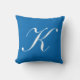 Personalized monogram pillow with a classic script letter K on a Blue background. Made in the USA from machine washable cotton or polyester. Perfect for Kaitlin, Kaitlyn, Katelyn, Katherine, Kathryn, Katie, Kayla, Kelly, Kelsey, Kimberly, Kristen or anyone else who's name begins with the letter K.