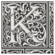 This initial K is part of a complete series of upper case William Morris inspired typography initials. The black and white lettering is highly decorative, styled after the fancy typography of the middle ages. Cute and trendy, this is a vintage chic monogram K - letter K- swirly K . Customize this vintage monogram by changing the background color; just choose "edit design", and edit background color. There is a complete alphabet of these letters. If you need a different letter, please visit the antiqueart store.