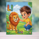Cute and colorful alphabet poster featuring the letter L with a cheerful child and a friendly Lion illustration.