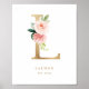 Letter L Blush Floral Monogram Gold Foil Nursery Poster