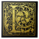Charming decorative letter L initial monogram calligraphy style typography first letter in black and faux gold (shades of yellow with highlights and shadows to simulate metallic gold texture).