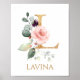 Elegant Letter L monogram nursery poster featuring watercolor pink rose and green foliage.