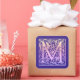 Letter M Monogram colorful first letter in a gradient of yellow, pink and purple set on cold blue.