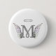 Letter M Initial Monogram with Angel Wings & Halo Pinback Button