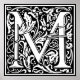 This initial M is part of a complete series of upper case William Morris inspired typography initials. The black and white lettering is highly decorative, styled after the fancy typography of the middle ages. Cute and trendy, this is a vintage chic monogram M - letter M- swirly M . Customize this vintage monogram by changing the background color; just choose "edit design", and edit background color. There is a complete alphabet of these letters. If you need a different letter, please visit the antiqueart store.