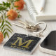 Gold colored faux metallic font style letter M set on black marble with white veining. Customize with your own name or message in pale golden yellow double font with golden yellow over same entry in a lighter font - or delete the name for just the letter. The letter has been placed in the center of the image.