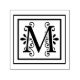monogram,initial,elegant,black,white,square,border,letter M