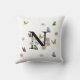 Letter N Floral Butterfly Monogram Initial Throw Pillow