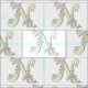 Pretty whimsical initial N drawing converted to graphic letter art in grey with shades of yellow, purple, pink on a white background. Background color can be changed to your own color choice if required. Personalized with your own initial this fabric reads N, ideal for customized sewing projects. Other letters available. © Original drawing and design by Sarah Trett. www.sarahtrett.com for www.mylittleeden.com