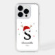 Letter name with Santa hat monogram custom initial iPhone 14 Pro case. Elevate your Christmas accessory with this personalized case. This custom initial case is a unique touch to your holiday accessories and makes for a thoughtful and cherished family gift.