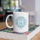 Customizable white coffee mug featuring the letter O in unique teal colored typography. Add your name using the personalization feature.