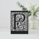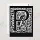 The letter P on a bold black and white card with an ornate swirl design. It has the appearance of antique woodblock art. If you're looking for a unique, signature design for all your correspondence needs, you can't go wrong with this one. Available on greeting cards, notecards or postcards. Envelopes included with greeting and notecards (no envelopes with postcards). Blank inside. Buy in bulk to save.