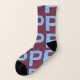 These socks feature a collection of the letter "P" with a bold print font and dual split color theme each sock is light blue on one side and maroon on the other. The light blue side has light blue letters maroon outline the maroon side has light blue letters maroon outline with a white web design inside of the letters in this mix match all over print style, all socks are made using unisex sizing.