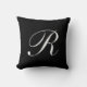 Personalized monogram pillow with a classic script letter R on a Black background. Made in the USA from machine washable cotton or polyester. Perfect for Rachel, Rebecca, Rachael, Rebekah, Rosa, Raquel, Renee, Rachelle, Regina, Robin, Rose or anyone else who's name begins with an Initial R.