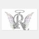 Letter R Initial Monogram with Angel Wings & Halo Rectangular Sticker