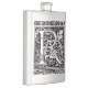 The product is a good size and came exactly as it was pictured. The lid is not attached to the flask, which could be dangerous on drunken nights... The print came out surprisingly well and looks very sharp. Would definitely recommend.