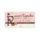 Letter R Monogram Custom Business return address labels to use for your bakery, your cupcake or other similar business. Sweet and Contemporary! This business signage design features three hand painted cupcakes and a Capital R that looks like it has been shaped out of dark chocolate. The Monogram Letter is in “milk chocolate” and will appeal sweet lovers everywhere! The background is a soft shell pink with latte colored swirls over a cream crackle finish and a chocolate brown stripe. This design is perfect for your wedding shower, bridal shower or for businesses such as wedding coordinators, event planners, bakeries, bake shops, custom wedding cake designers, specialty cupcake services and more. Every letter of the alphabet is available, if you don't see what you want just email us!