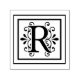 monogram,initial,elegant,black,white,square,border,letter R