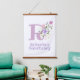 Personalised with your own name, Initial & Name with Floral Design on a Wall-Hanging Tapestry. Design features the recipient's Monogram & Name with Flowers either side in a water color pastel style. Initial is the letter R. Example shows Roberta.